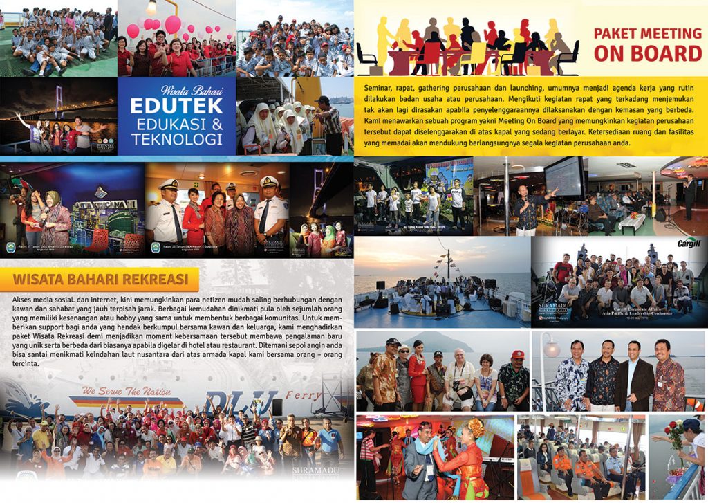 - Paket Wisata bahari dapat dilaksanakan secara on request di setiap lintasan yang kami layani baik lintas penyebrangan (lintas pendek) maupun lintas laut (lintas panjang)